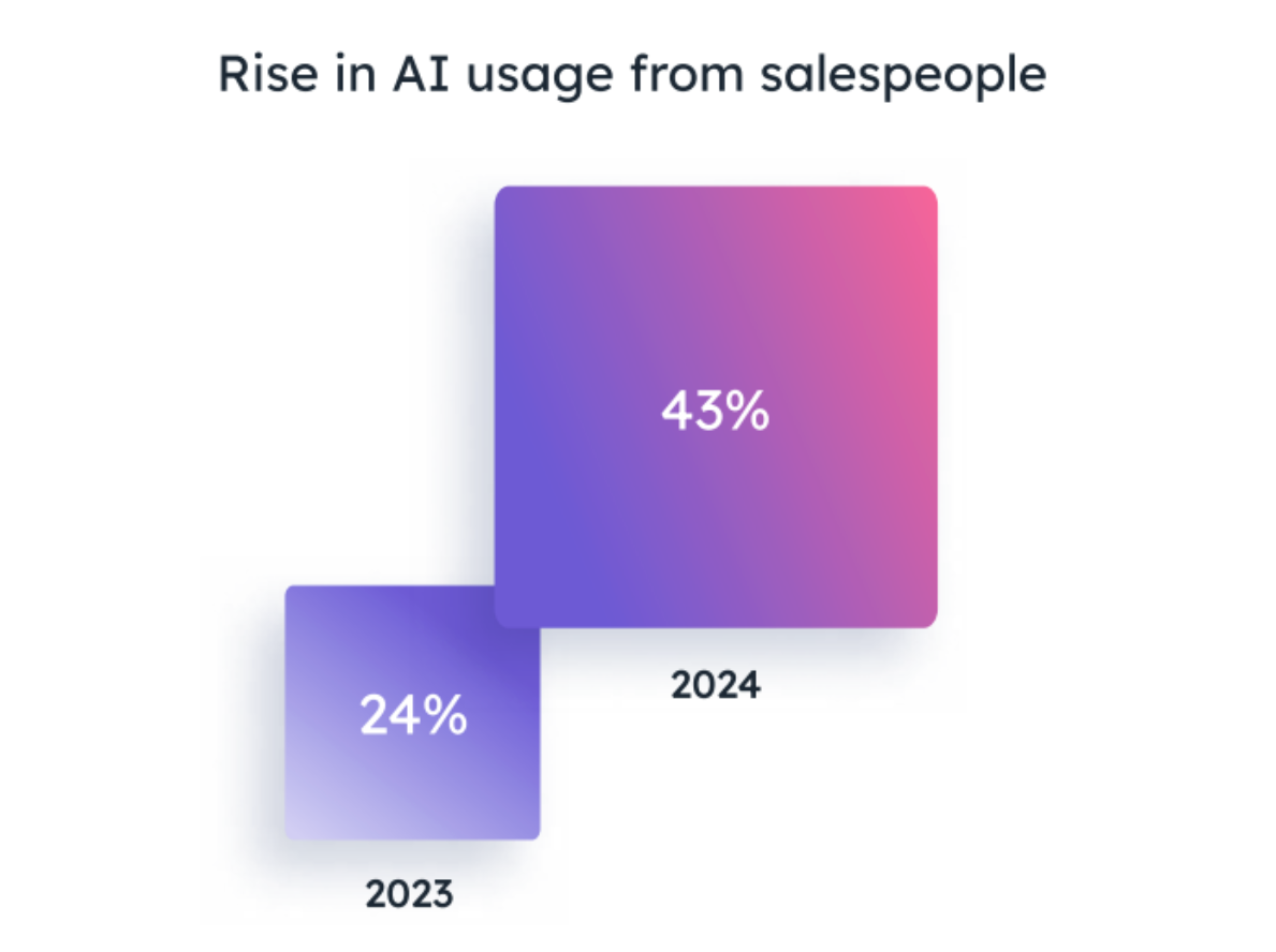 More professionals are adopting emerging technologies for sales and marketing activities. A recent Hubspot survey found that AI usage by salespeople rose from 23% in 2023 to 43% in 2024.