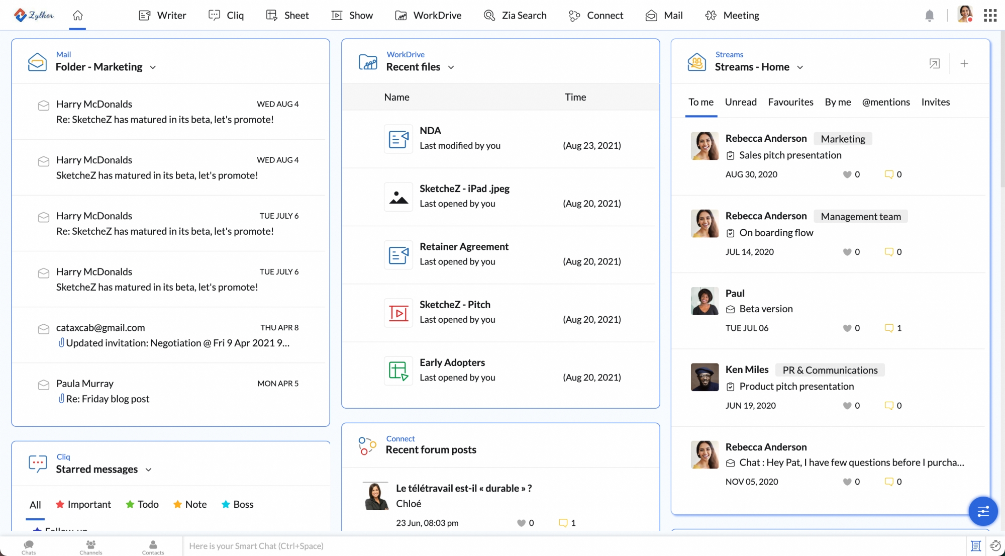Zia, Zoho’s generative AI assistant, is threaded throughout the Workplace suite, offering contextual support across tools. In Zoho Writer, Zia helps polish grammar and phrasing. In Zoho CRM, it can surface insights, predict sales outcomes, and handle routine admin tasks. And in Zoho Desk, Zia helps support teams by summarizing incoming tickets and suggesting replies based on similar past cases.