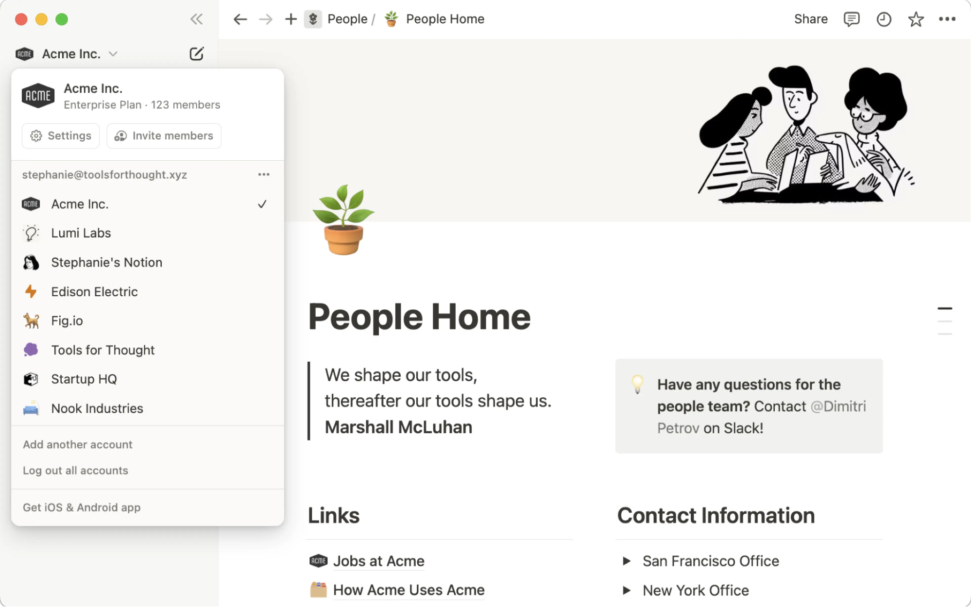 Notion is a collaborative workspace designed for teams who need flexibility in how they structure information and a reliable way to keep work and documentation in sync.