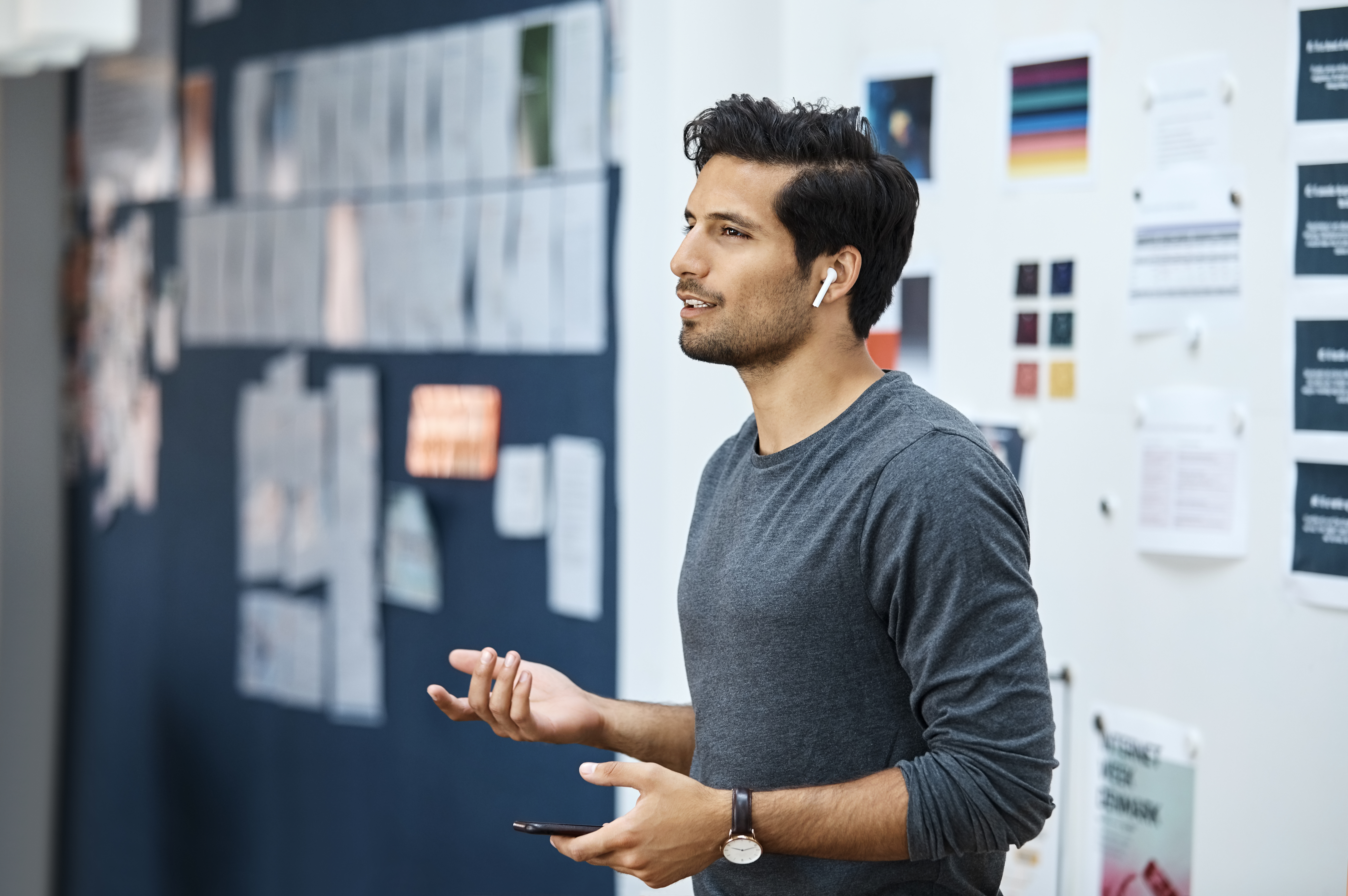 Using dual microphones and active noise cancelling technology, this Bluetooth earphone design with three wearing styles makes it a comfortable option to minimise background distractions. It’s also easy to pair with your devices as a hands-free device and has up to seven hours of battery life, making it suited for managing your remote teams as it gives many hours talk time. What’s more, it’s widely available—even on Amazon.