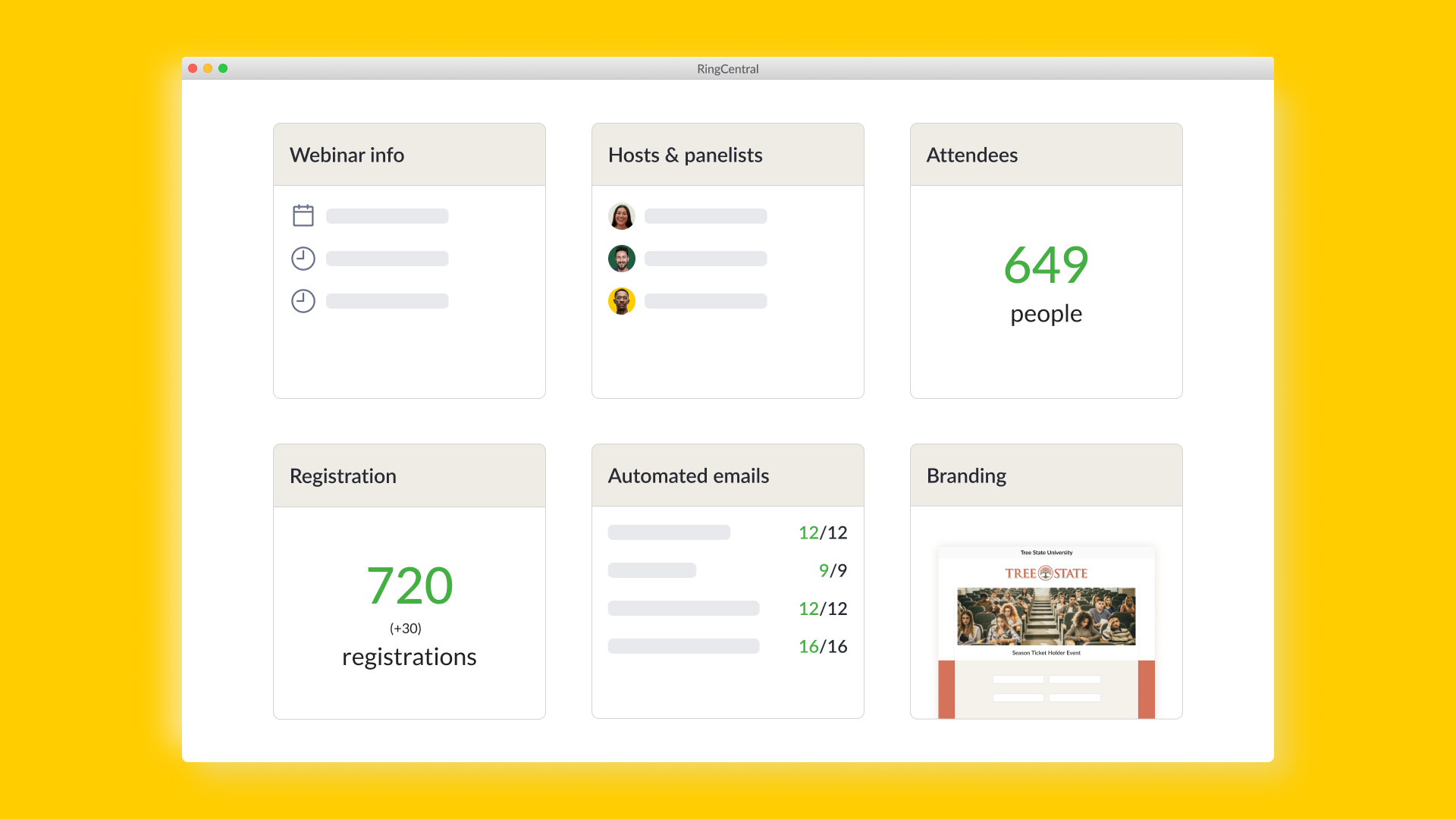 See how it all comes together, courtesy of Tree State University, who recently ran a marketing webinar for their alumni season ticket holders using RingCentral Webinar: