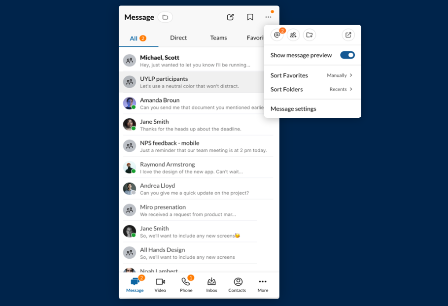 • Message previews: Preview messages on desktop before clicking into them to quickly scan the first sentence of the message. We’ve allowed for this feature to be customized per user – toggle it on or off, whatever you prefer.