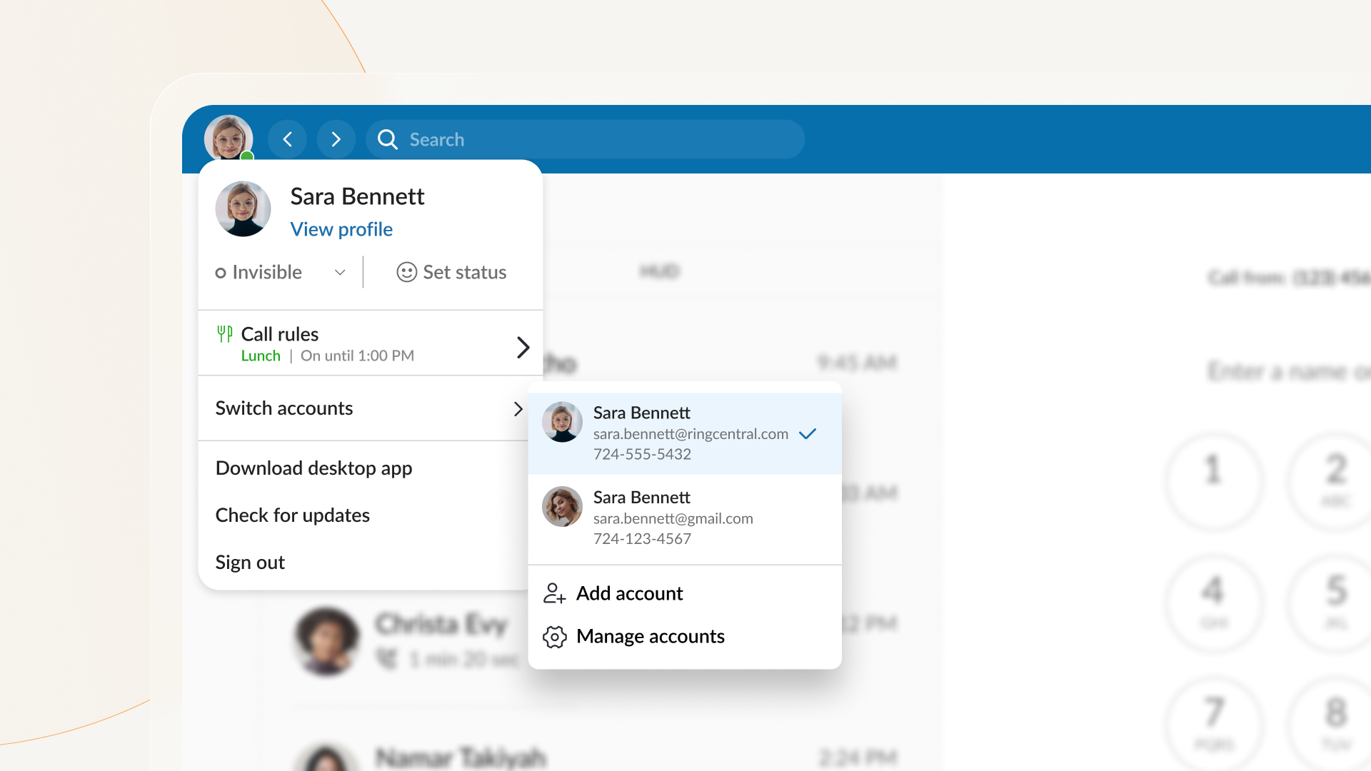 Say goodbye to the hassle of logging in and out of different RingCentral accounts to switch and check for updates.
