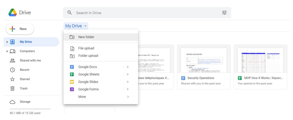 An example of a cloud-based storage solution is Google Drive. This stores various file types, including Google Docs and Sheets, and the free version has limited cloud space. Files can be organised into folders to either share with the entire team or specific individuals, as well as setting permissions to limit who can edit or make suggestions on files. Google Drive integrates with other Google products, such as Gmail, simplifying sending files from the drive.