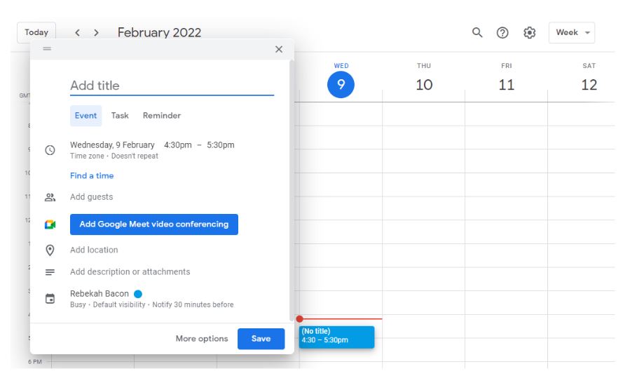Automation can be used within shared calendars to send reminders to team members regarding important deadlines or checkpoints in the project. Most calendar apps also integrate with video conferencing tools, blocking time and storing invites for future video calls. Other integrations are also available with most calendar software, such as with messaging apps or often being included in task management tools and software packages.