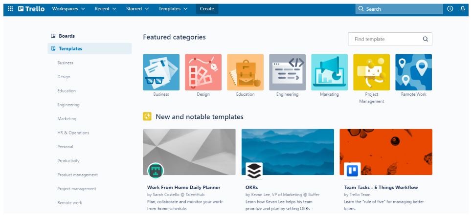 For project management, Trello provides a workspace to create lists, assign tasks and track progress. Often used to create Kanban boards for task management, cards can be created and sorted into different categories using drag and drop to add checklists, deadlines, and attachments. Trello boards can be started from scratch or from existing templates to organise and oversee your projects, being shared with your entire team to use.