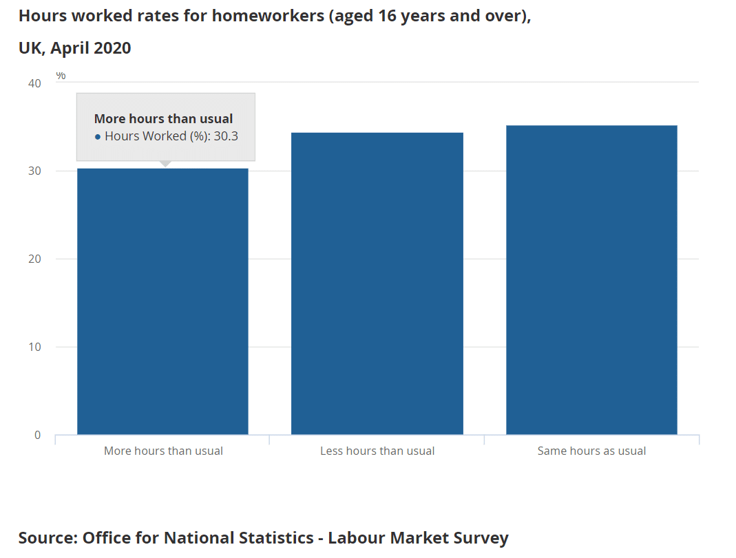 That doesn’t mean to say everyone is now working remotely full time, however. Whether for logistical or financial reasons, some companies have been unable to move to a 100% remote work arrangement. They’ve had to adopt a hybrid workplace model – a compromise between remote and office-based working. In April, 46.6% of people were doing some work at home, 86% directly due to the coronavirus pandemic.