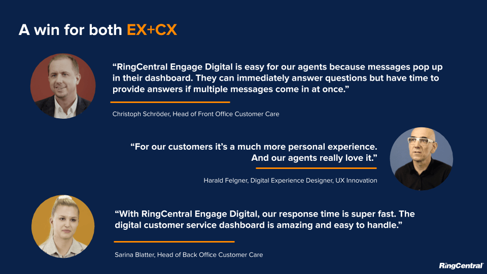 The solution enabled the company to manage the additional volume of messages coming from new channels. Agents described the interface as very intuitive, which reduced the training time. Sarina Blatter, Head of Customer Care Back-Office, explains, “RingCentral Engage Digital changed the way we talk to our customers. We are much faster to react to a message, every customer is happier.”