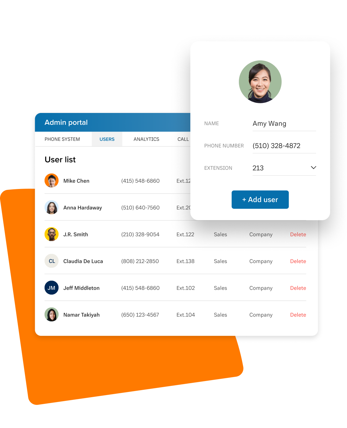 With a cloud-based phone system, businesses can add as many extensions as they need to accommodate heightened call volume, or, if necessary, simply call in to deactivate these extra extensions. Unlike traditional systems, businesses only pay for the extensions they need for as long as they need them. This is how easy it is to add a new user with RingCentral: