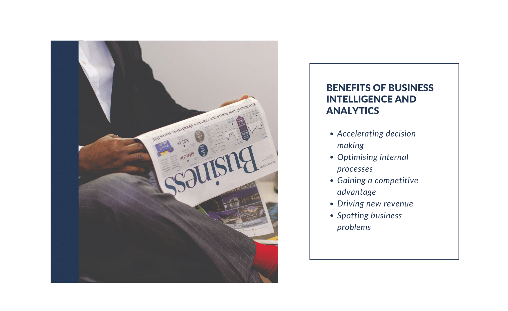- Optimising internal processes: Various business users in a company – not just the IT team – can benefit from business intelligence. Some business intelligence tools even come with visualisation and wallboards that can deliver reports to teams in real-time.