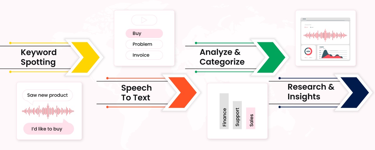 Call centre software gives the manager a range of tools with which to analyse the spectrum of agent-customer interactions. Examples of this include speech analytics that can report on the tone of a conversation and key phrases that crop up. Speech analytics can be immensely helpful, as this graphic illustrates.