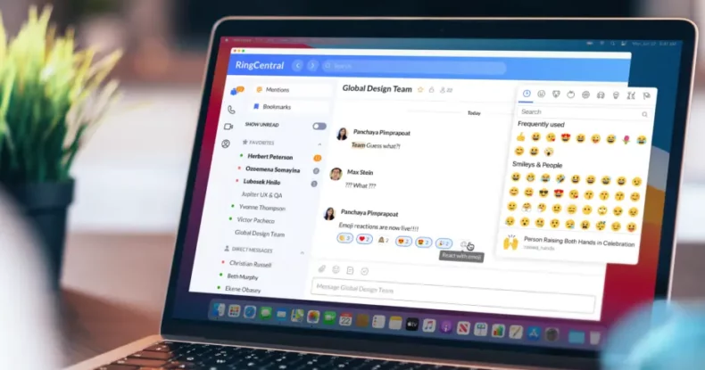 Emoji reactions are a quick and fun way to respond to messages in the RingCentral app. Instead of having to reply to specific messages, you can react to them using any emoji in the emoji menu, expressing how you feel in a lightweight way. Emoji reactions can even replace the need for follow-up messages.
