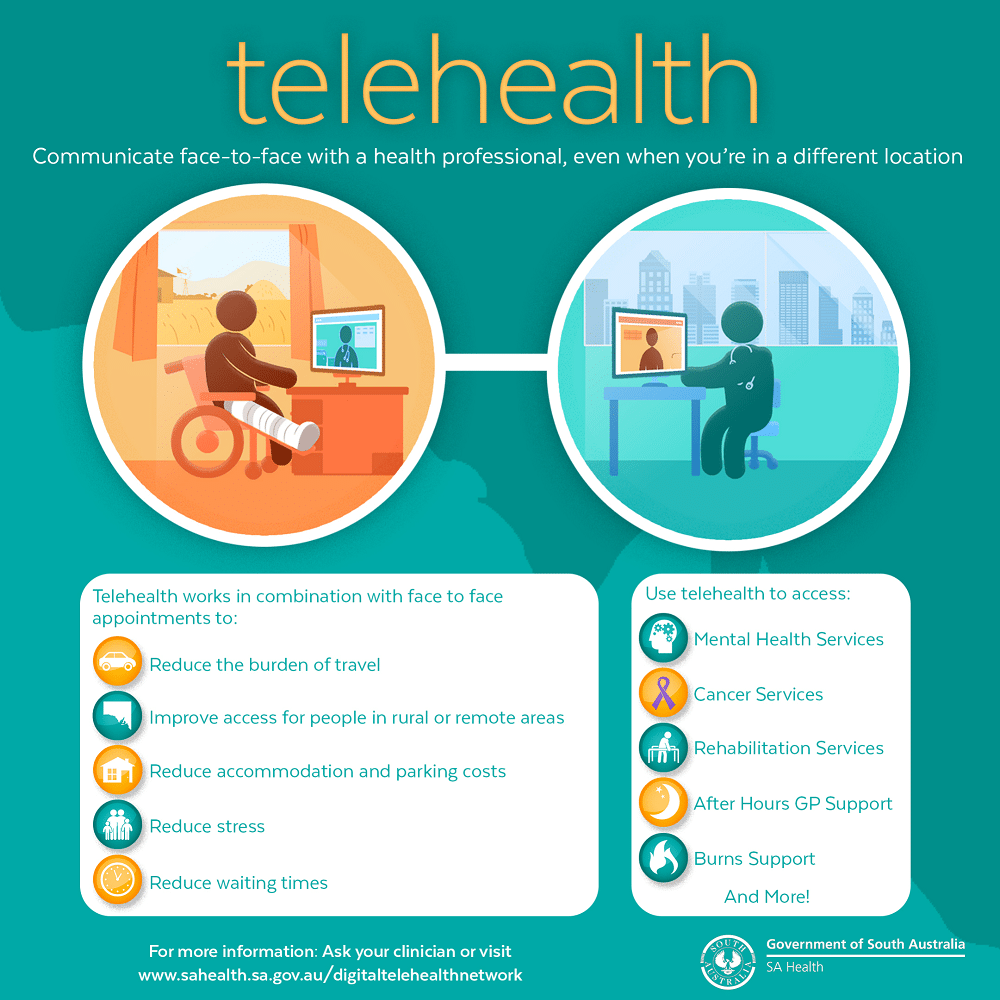 Telehealth is the use of technology in general to promote health. For example, perhaps the government may decide to do a text campaign promoting healthy eating. Whilst telemedicine is a specific offshoot from telehealth. Telemedicine is when health care providers use technology, like video calls, to give medical care to patients who can’t make it into a hospital or doctor’s office for one reason or another.