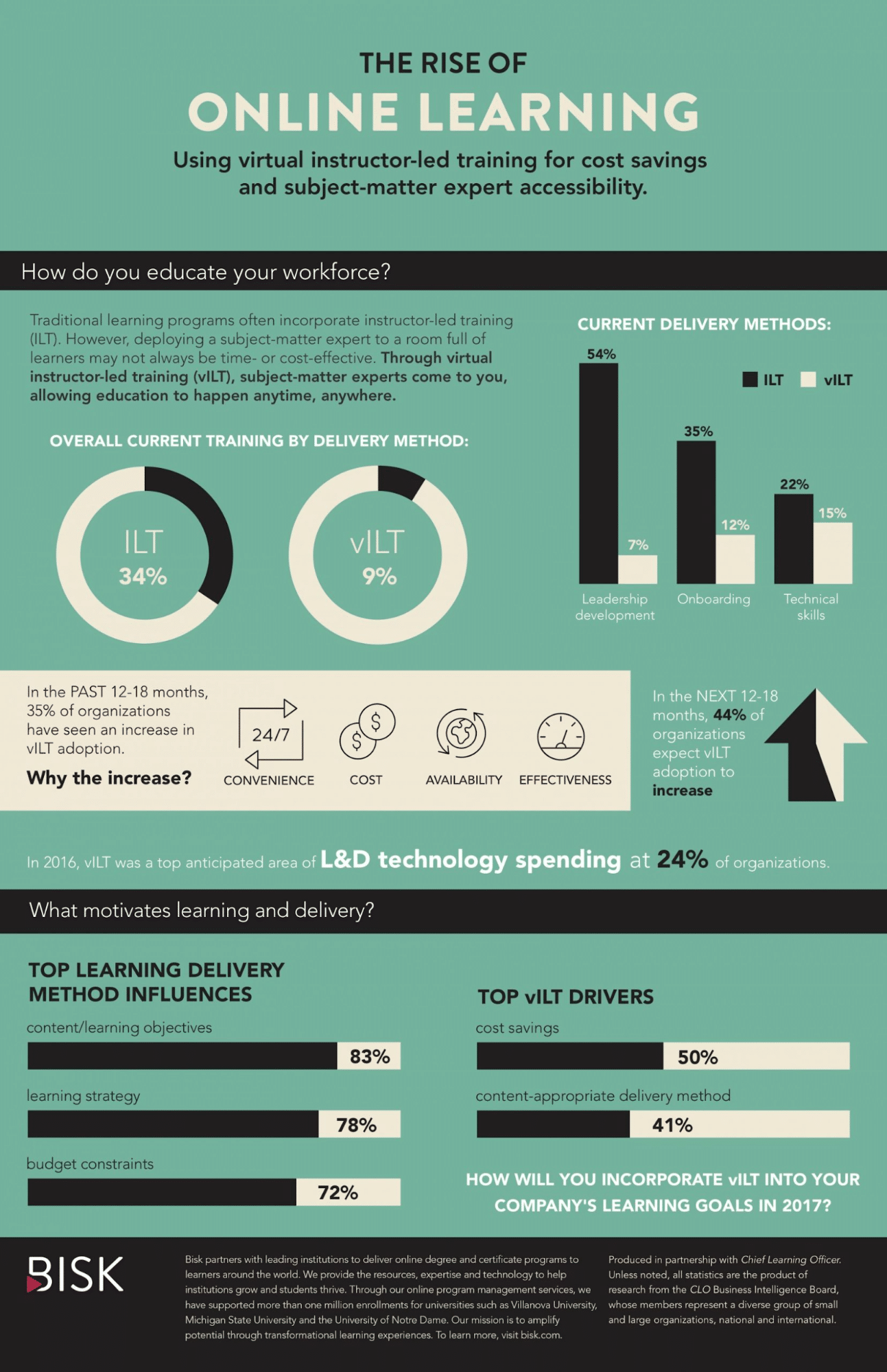 To start with, it’s important to know that there is a difference between e-learning and online learning. E-learning is any type of learning that has been discovered digitally. For example, if you receive an email stating facts about a current affairs situation you weren’t aware of, you would have learnt the information through e-learning.