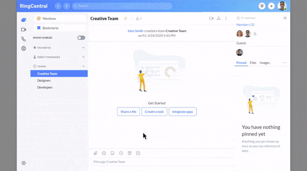 You might even have the entire group join remotely from their desks. This is something we do at RingCentral religiously, even if even one person is remote. It puts everyone on a level playing field and encourages more balanced participation. Plus, nobody likes being the giant head on the TV screen at the front of the room.