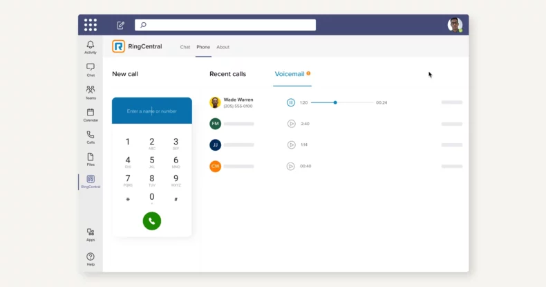 Here’s how the interface looks when using RingCentral for Direct Routing: