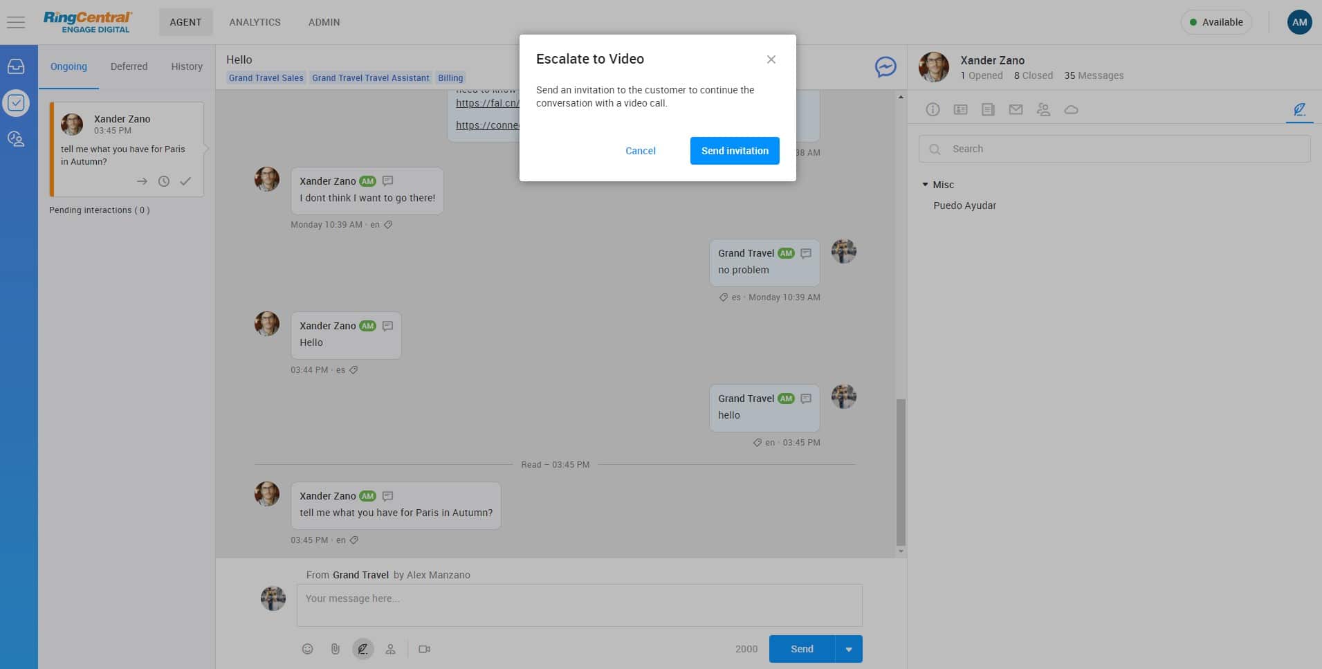 RingCentral Engage Digital now allows customers to seamlessly escalate a conversation from all private digital channels to video with agents with a simple click.