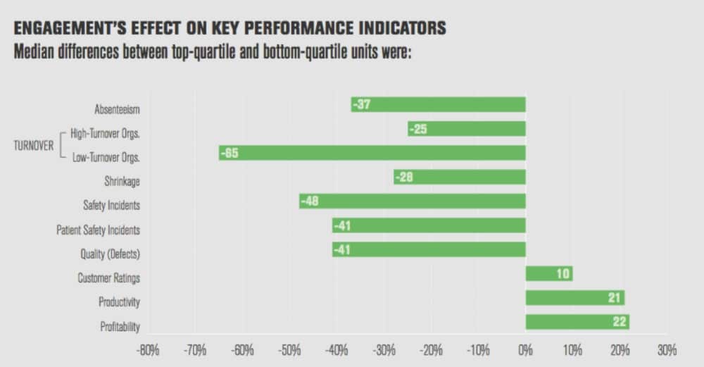 Having content and engaged employees with superior morale isn’t a luxury for firms. Studies have repeatedly shown that engaged employees are more productive than their disengaged counterparts. According to Gallup, the uptick in productivity can be as much as 17%.