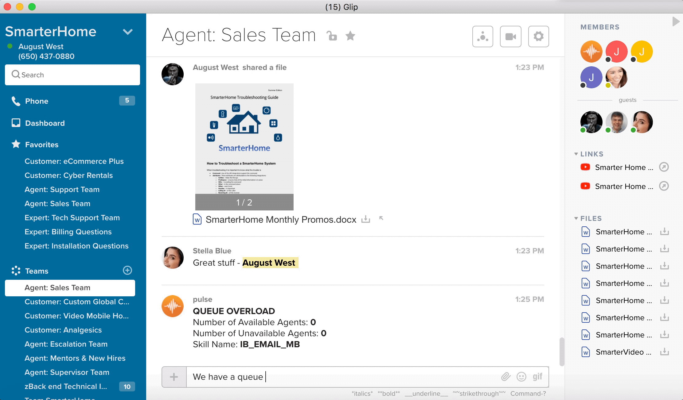 Once Pulse is sending you notifications to Glip, you’re directly in the right tool to take any required action. Either the teams have already been pre-briefed for action, or you can take it from there and assign tasks to the relevant people or groups. This means the contact centre is an active part of your collaborating teams.
