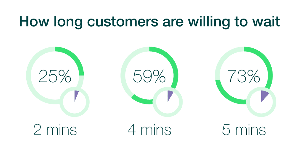 The above stats show how long shoppers in America are willing to wait in a queue before abandoning their shopping. A whopping 73% of customers surveyed said they would abandon their purchase if they had to wait more than five minutes! This isn’t just Americans either, the queue tolerant Brits consider 9 minutes long enough to reconsider their purchases, and will walk out of queues more than seven people deep.