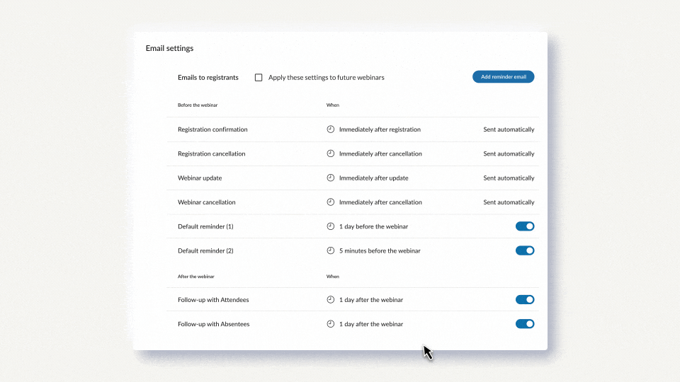 It also helps to make it easy for panelists and guests to add the webinar to their personal calendars. A tool like RingCentral Webinar syncs with popular calendars and guests can choose to send an invite to themselves for safe keeping.