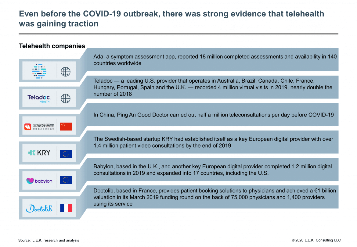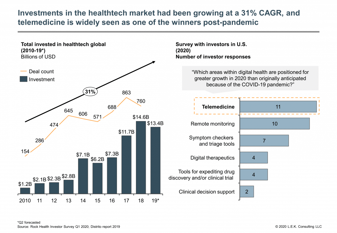 Covid-19 has forced the world into using telehealth more than it ever has before. It has been a growing industry for some time, and we should now expect to see increased adoption and development even after the pandemic is resolved.