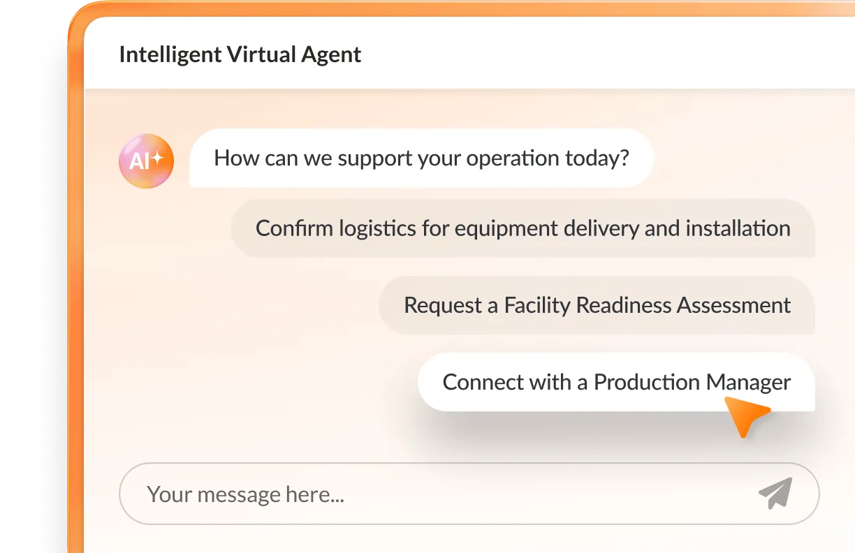 Provide 24/7 support for order status, parts availability, and technical inquiries with intelligent virtual agents trained on your knowledge base.