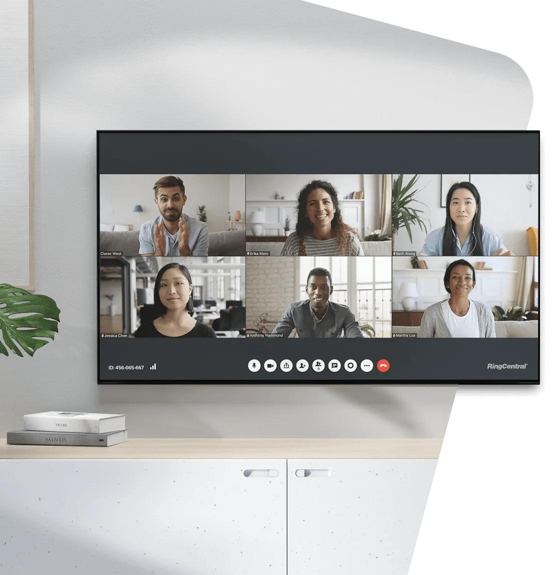 In-office employees and remote working joining a meeting via RingCentral Rooms