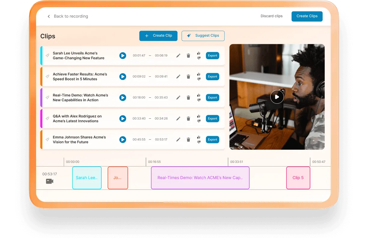AI can identify and produce highlight clips easily with one click, eliminating the need for expensive, time-consuming post-event edits. This feature is particularly valuable for organizations looking to extend the value of their events by creating shareable content for marketing, training, or internal communications.