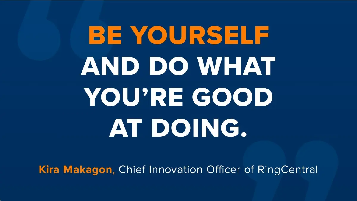 You can only be good at what you do if you’re doing what you’re good at. Regardless of where you are in your career, don’t be in a rush. Don’t go title chasing, because it’s not for everyone. You can get to a title and you can be miserable, or you could be a great individual contributor and not a great manager.”-Kira Makagon, Chief Innovation Officer, RingCentral