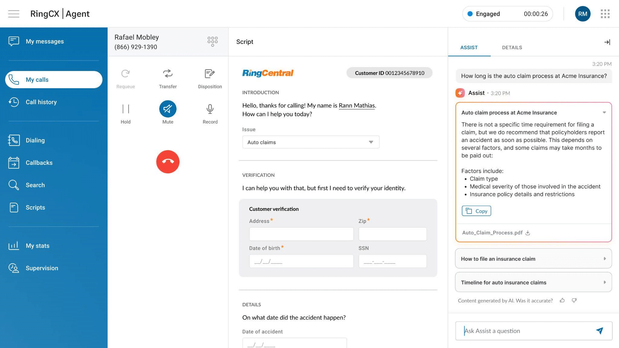 RingCX AI Assist provides real-time AI coaching and guidance for agents and supervisors.