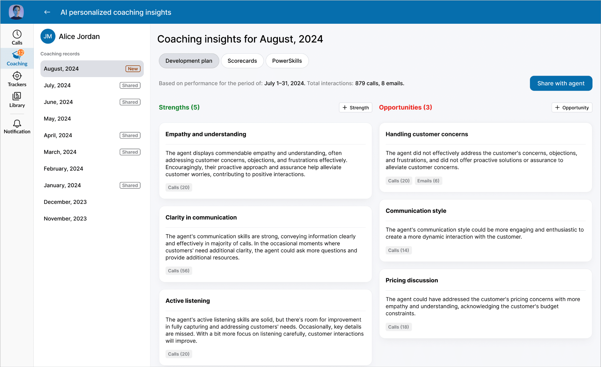 If agents don’t have the right AI-driven tools to help them find answers, the high stress of dealing with frustrated customers can quickly lead to burnout. Ideally, a supervisor would be on every call to provide live coaching and guidance, but in reality, supervisors must pick and choose which calls to monitor.