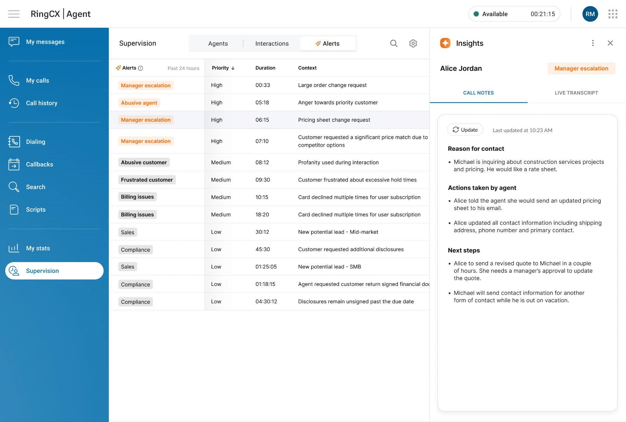 For supervisors, it provides real-time alerts, summaries, and transcripts. It shows why the customers called, what the agent has done to solve the problem, and suggested next steps. This makes it easier to understand if intervention is needed and puts them in a better position to help.