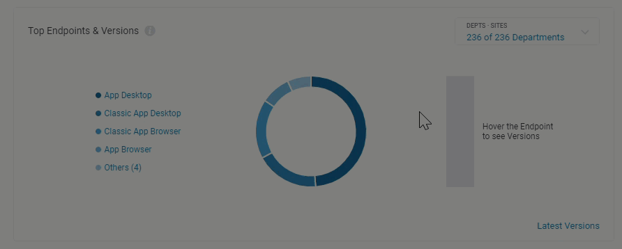 The bar represents which app versions your teams are using. You can also access version information at the end-user level. This helps identify when your organization is lagging behind in terms of versions or which users need to upgrade to the latest version.