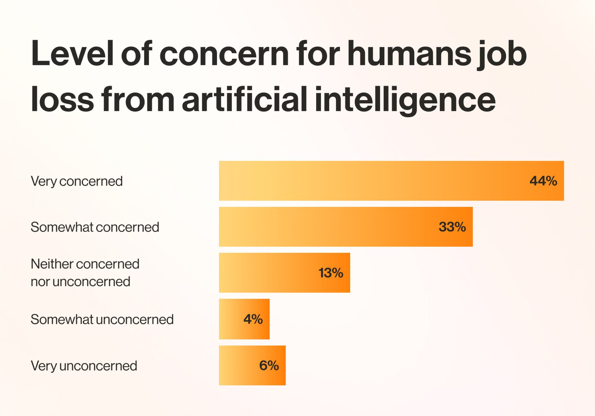 A Forbes Advisor survey reports that 77% of employees are at least somewhat concerned about losing their jobs to AI: