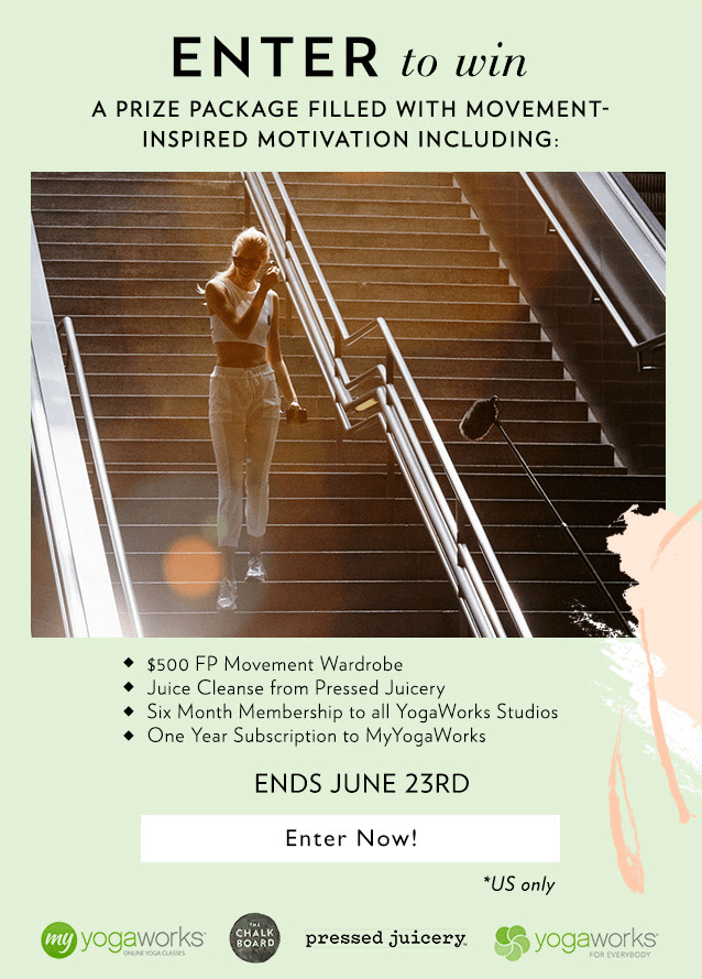 FreePeople is a clothing brand (you might have heard of them or seen their stuff at Urban Outfitters). They wanted to promote a new activewear line. So, they partnered with other health and wellness brands (that didn’t also sell clothes) for a giveaway*: