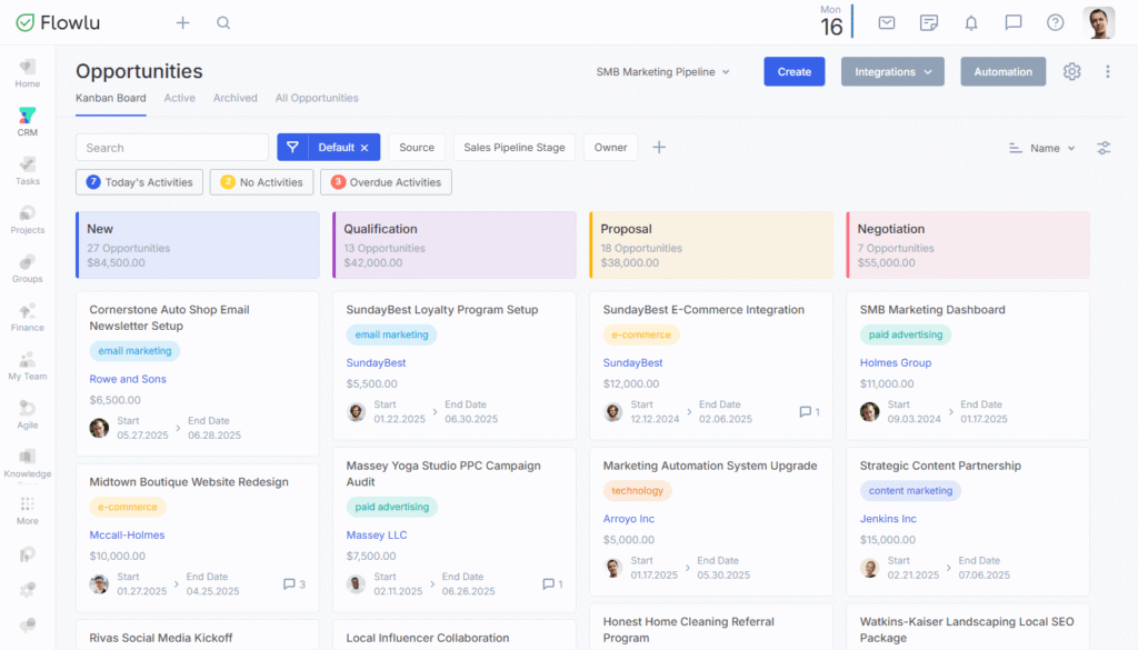 Takeaway: Flowlu is a small business CRM with projects and automations built for small teams who don’t want to overspend on app subscriptions.