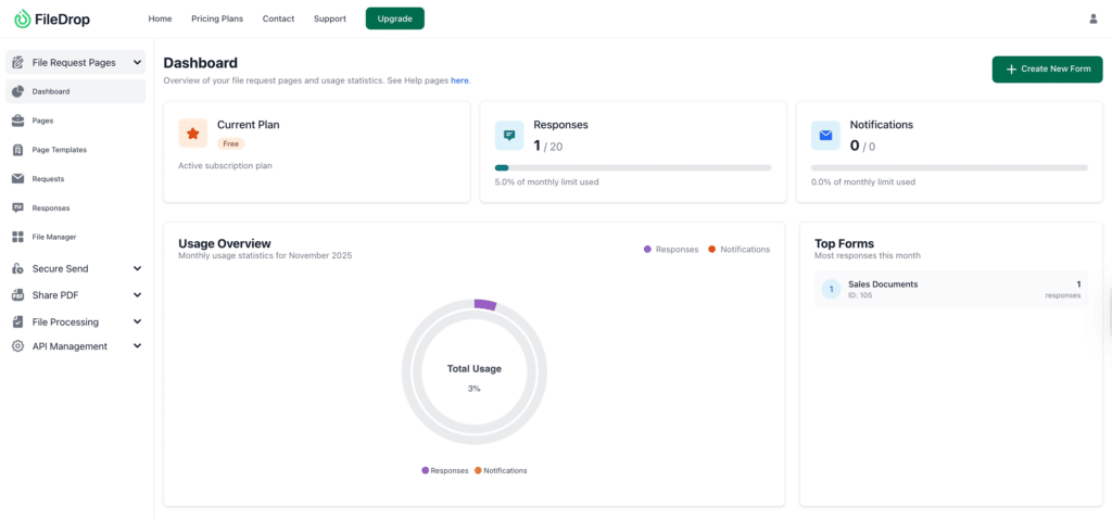 First, it lets you create branded upload pages where clients submit files without login credentials. Files land directly in their cloud storage or your Google Drive eliminating email back and forth asking for that one missing document.