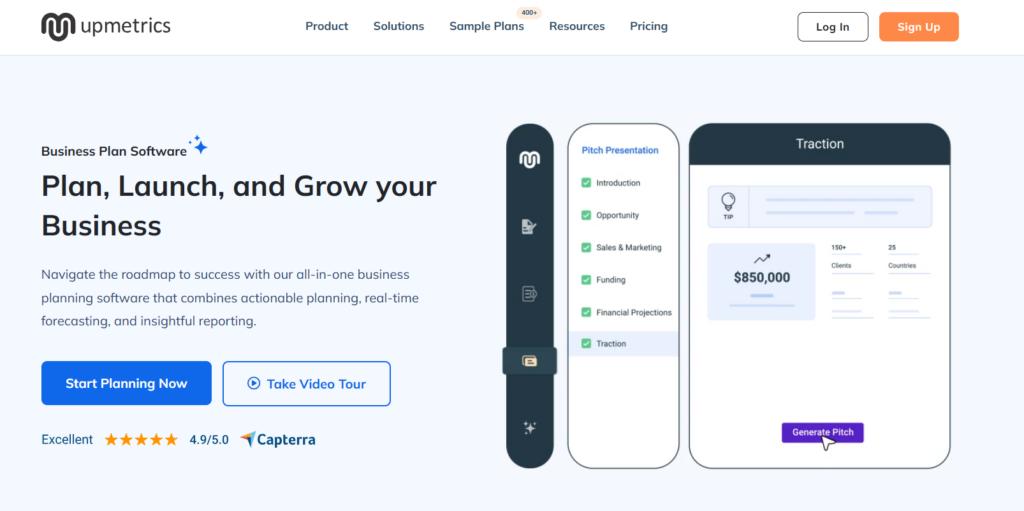 Upmetrics is an AI business plan generator that helps you create a complete business plan with simple steps and a clean workspace. It gives you guided prompts, sample structures, and AI support that improves your writing without taking control away from you.
