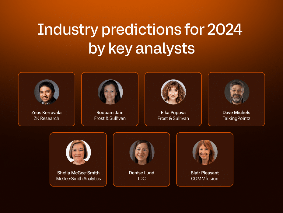 Proven, demonstrated value in AI use cases for UCaaS and CCaaS applications and improved, inclusive hybrid events can sum up most of our analyst predictions for 2024. Vendors, customers and analysts alike saw great opportunities for what AI could do for both employee and customer experiences in 2023. But I think organizations will raise the bar in 2024 on what they expect to get out of their AI investment. The industry will see more AI applications that reduce effort, save money, and accelerate value realization. And solving for hybrid is still a greenfield opportunity. We should see a dramatic narrowing of the equity gap that still exists in hybrid work and hybrid events. I can’t wait.