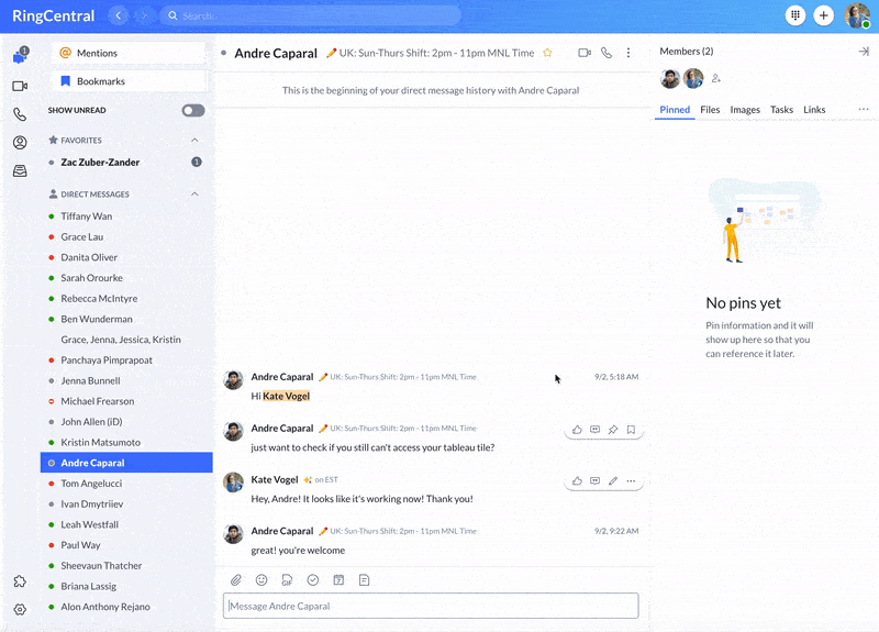 If you’re tired of having all your emails, discussions, and resources scattered across various platforms, you’ll love how RingCentral streamlines all of your team’s communication into shared conversations, files, tasks, and calendars.