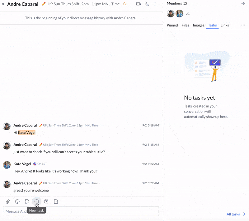 What’s more, colleagues can leave comments on tasks and engage in project conversations—and receive automatic updates when someone’s left them a comment or a new task.
