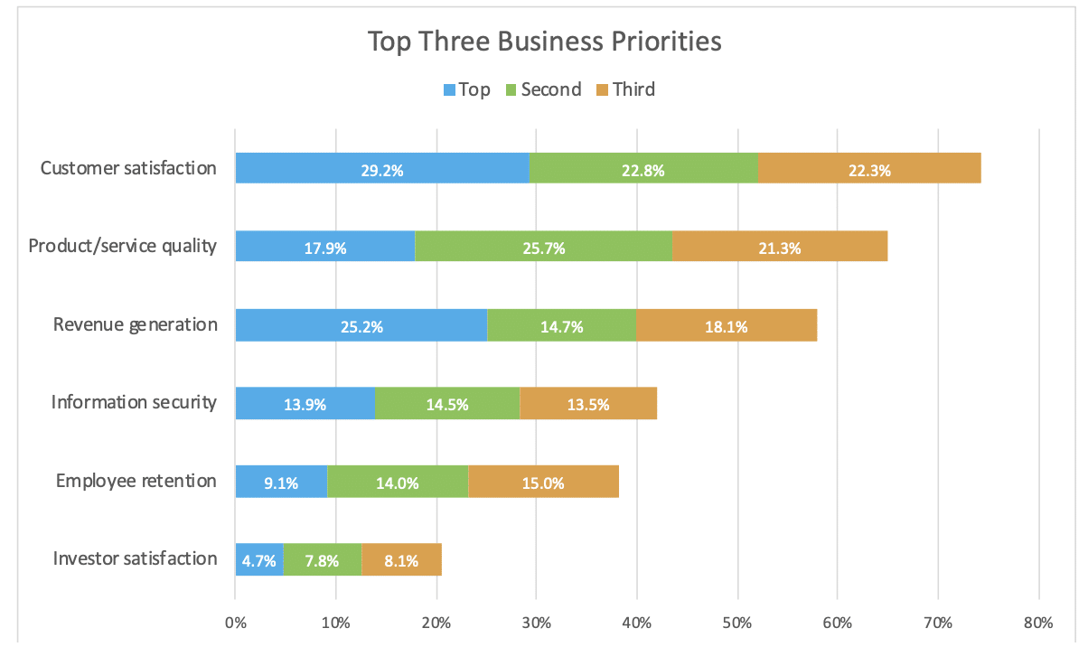 That’s why, according to Metrigy’s 2022 State of Customer Experience Technology report, 29.2% of respondents identified customer satisfaction as their top business priority and three-quarters of companies placed customer satisfaction in their top three. Customer satisfaction even ranks above employee retention, revenue, security, and product/service quality.