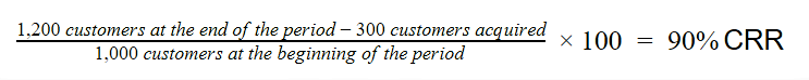If you had 1,000 customers at the beginning of Q1 and ended the quarter with 1,200 customers, after having won 300 new ones over the span of Q1, your CRR would be 90%.