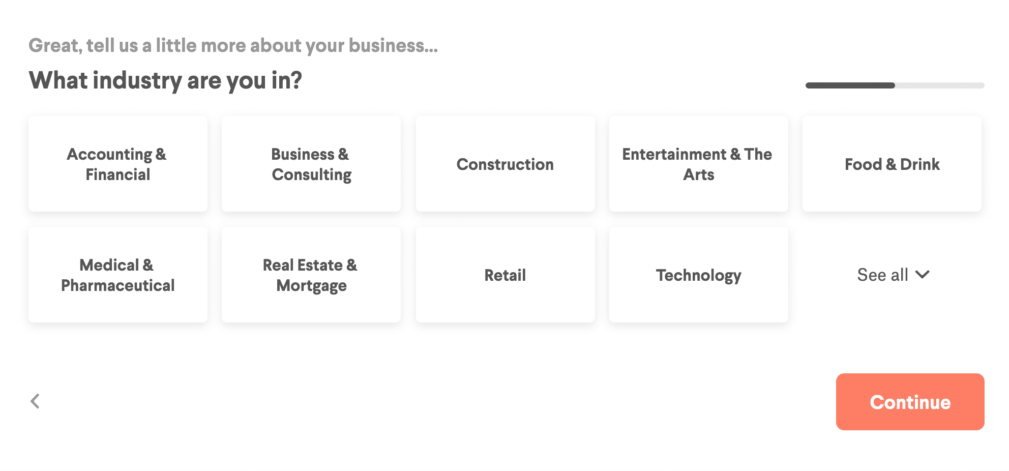 If you’re a new customer to 99designs, their website doesn’t ask you to sign up with them right away. Instead, they ask you a series of questions: