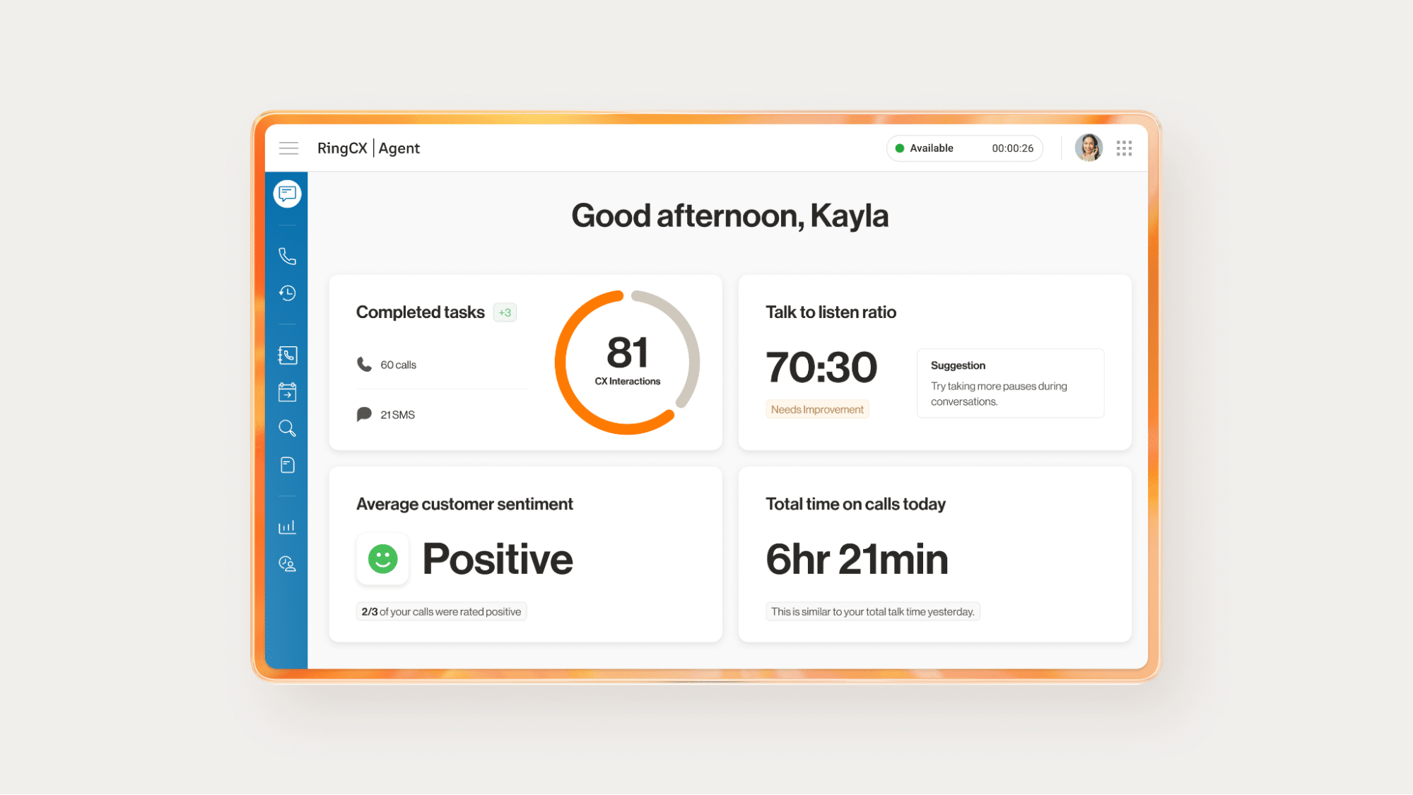RingCX supports your agents as well as your customers, with AI tools helping them to respond quickly and develop a deep understanding of customer needs. Automate repetitive tasks to streamline your contact center operations, and use the analytics and reporting features to monitor performance and make improvements.