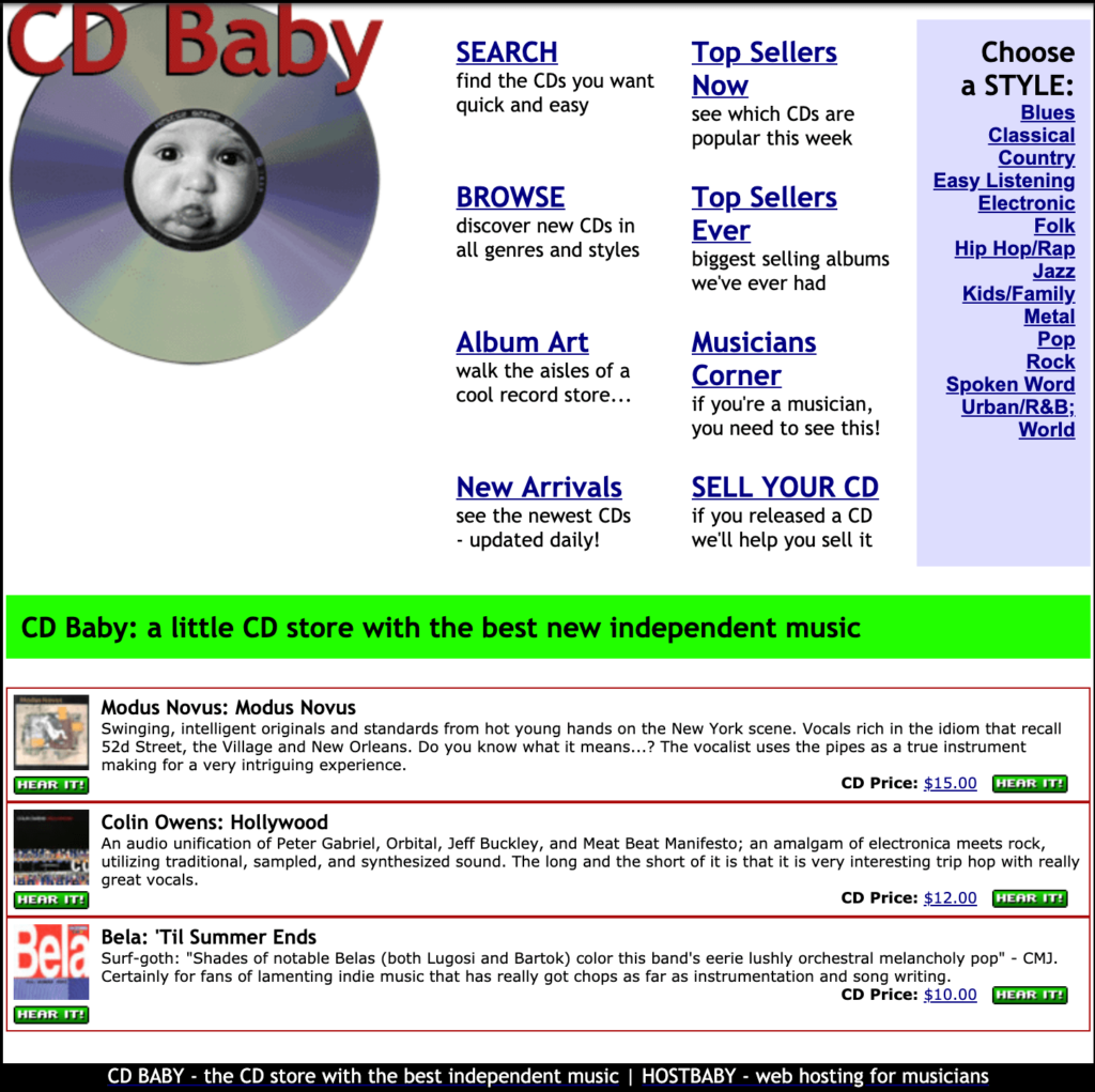 Derek created a website—CDbaby.com—in order to sell his band’s CDs to his audience. But the online payment gateway hadn’t become mainstream yet, so he still had to rely on mail-in checks and money orders to ship CDs to his customers.