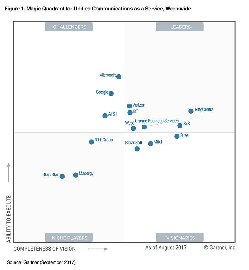 As a result, RingCentral is once again positioned furthest for completeness of vision and highest for ability to execute in the Leaders Quadrant for Unified Communications as a Service, worldwide.