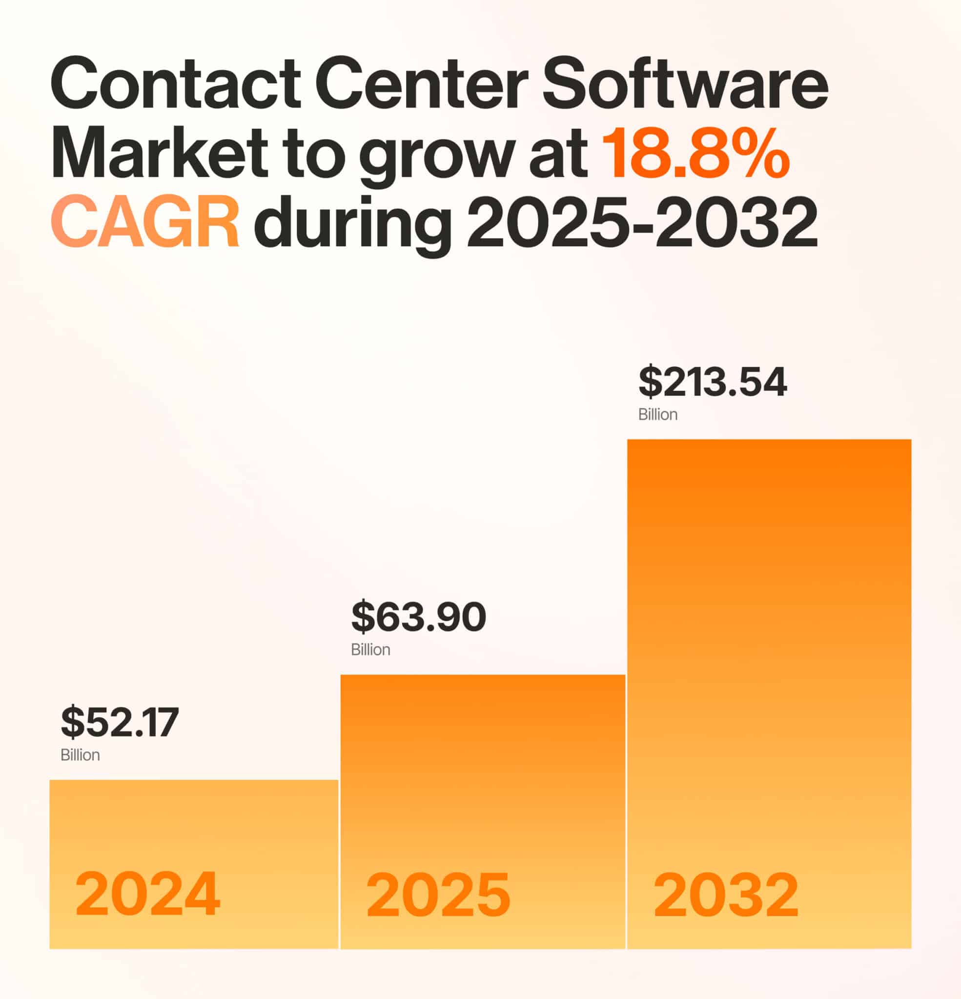 Modern businesses are increasingly shifting to contact centers to meet consumer preferences and expectations. This is no more obvious than when looking at the growth of the global contact center software market. Fortune Business Insights predicts the market to grow from $63.9 billion in 2025 to $213.5 billion by 2032.