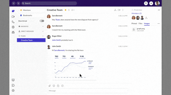 Built-in team messaging allows you to chat with colleagues and external parties, share files, create teams, and much more.